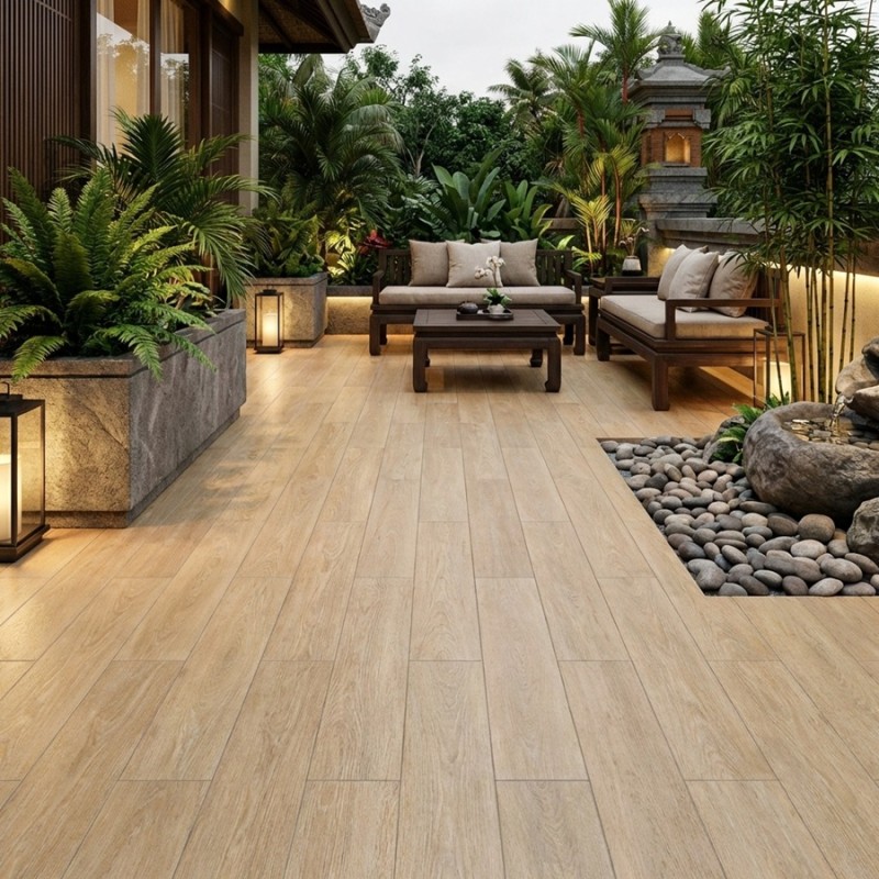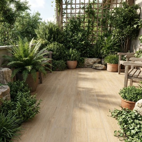 Le carrelage IMITATION BOIS LARIX ROBLE est parfait pour assortir votre intérieur avec votre extérieur à l'aide d'un seul produit.