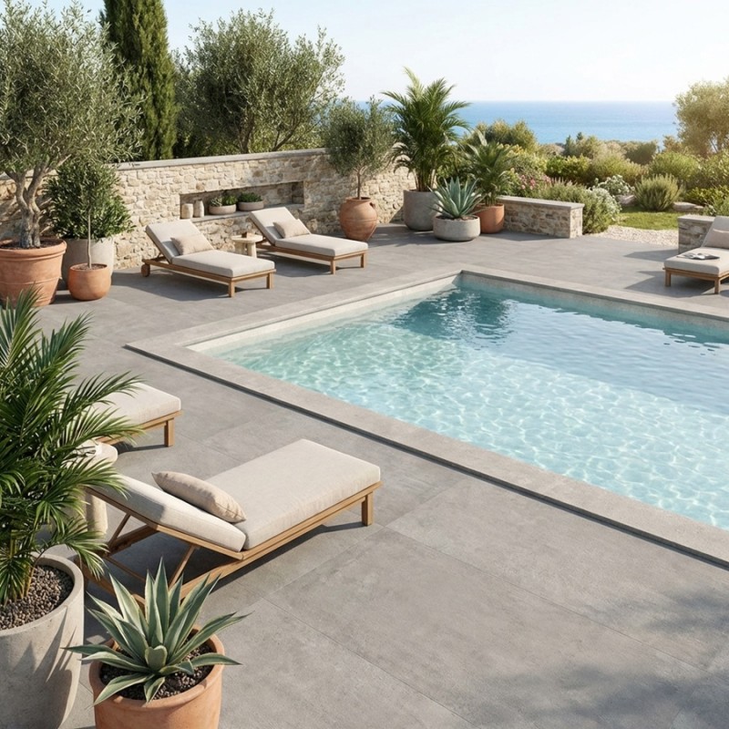 La margelle Concrete Moka 33x120 cm apporte une finition contemporaine à vos contours de piscine. Sa teinte moka douce et naturelle s’intègre facilement dans tout style extérieur. Robuste et antidérapante, elle allie esthétique moderne et sécurité. Parfaite pour sublimer vos aménagements extérieurs.