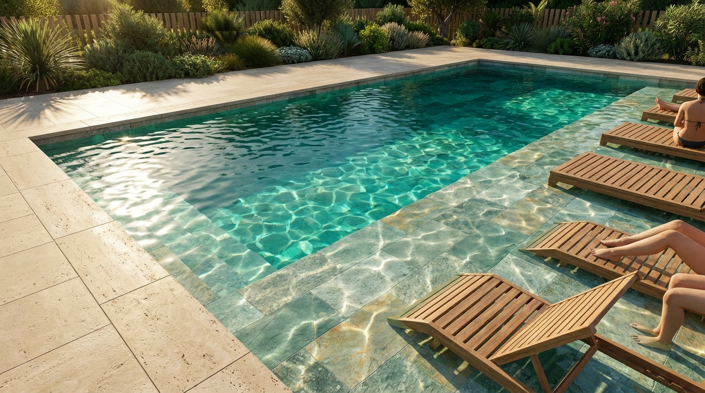 En 2026, la tendance est aux zones plus larges et un peu plus profondes, afin d’installer facilement des transats, une option de plus en plus recherchée.