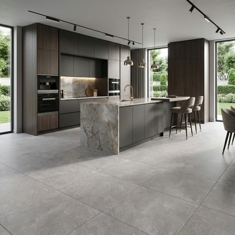 Le carrelage Acero 60x60 gris minéral s’adapte à de nombreux styles décoratifs :