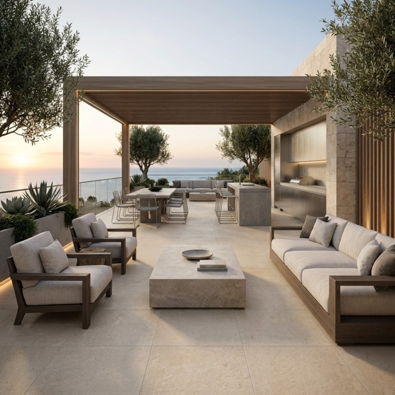 Un carrelage extérieur effet béton noble et chic.