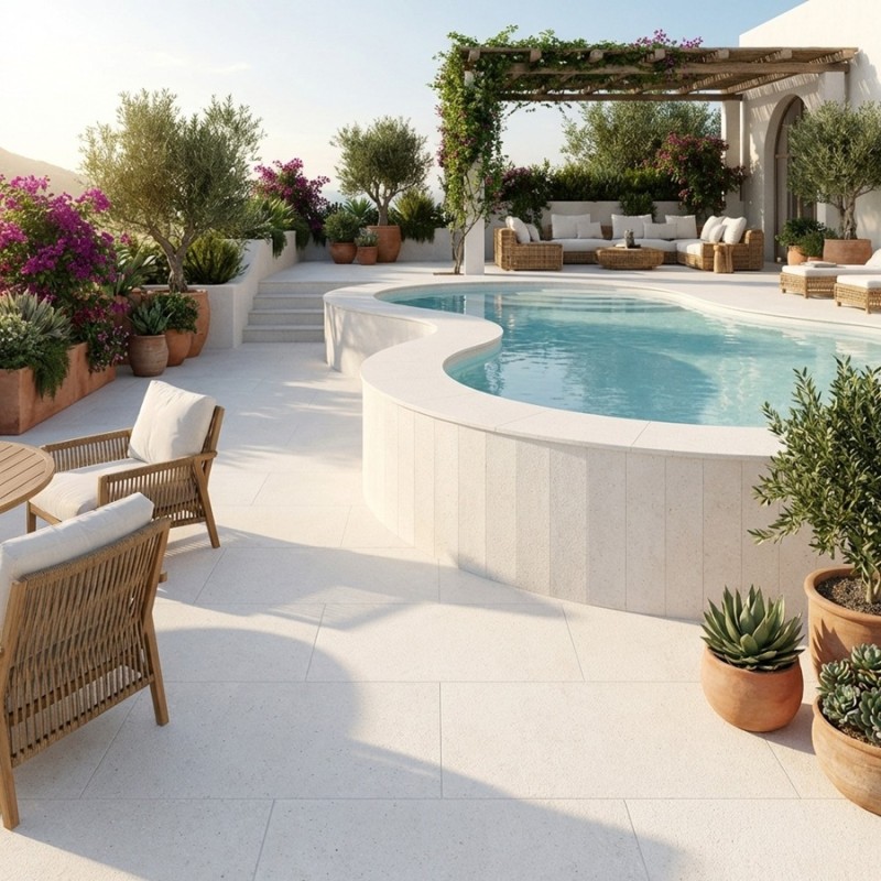 Le carrelage béton ciré beige R10 s’adapte à toutes les décorations extérieures :