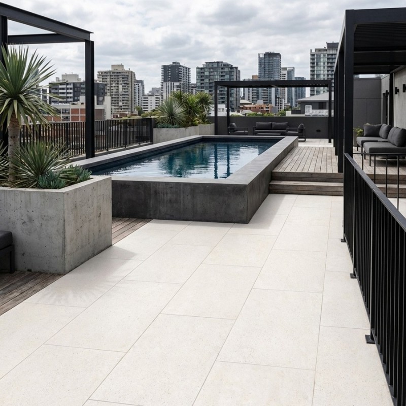 Ce carrelage extérieur convient parfaitement aux terrasses, allées.
