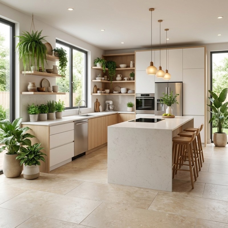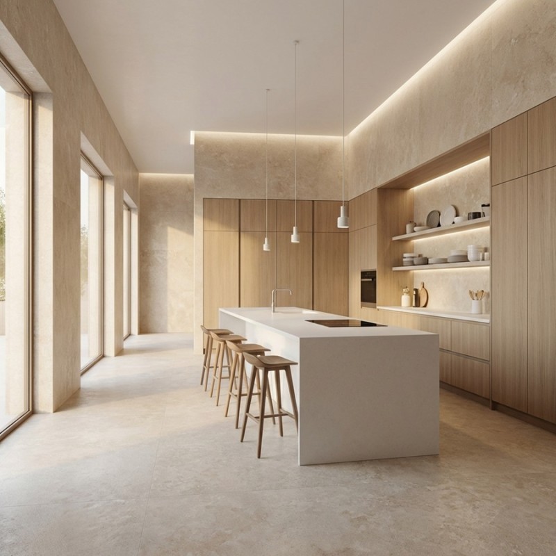 Le carrelage imitation travertin 60x90 s’accorde avec de nombreux styles décoratifs :