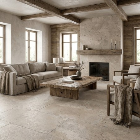 Sa couleur beige pierre naturelle, légèrement nuancée, en fait un excellent choix pour une décoration moderne ou bohème. L’aspect travertin apporte de la profondeur et une touche chaleureuse à chaque pièce intérieur.