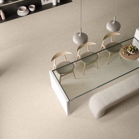 Son format 60x120 cm permet de structurer le sol avec régularité et modernité, en limitant l’effet de joints et en renforçant la sensation de surface continue. L’imitation pierre est soulignée par une texture mate et structurée qui valorise le caractère naturel du carreau.