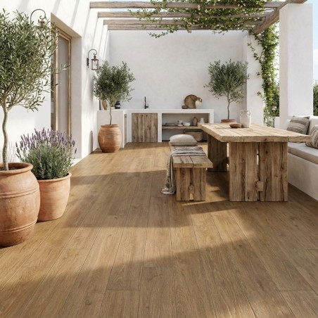 Carrelage antidérapant ONE’S Roble 22,5x90 – Terrasse imitation bois chaud