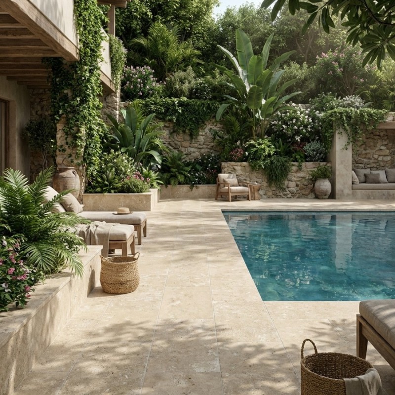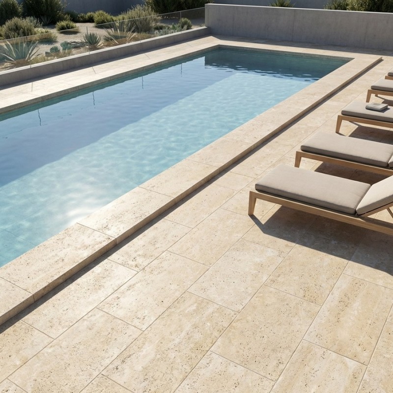 Carrelage antidérapant Provenza Bone 90x90 – Travertin beige ivoire