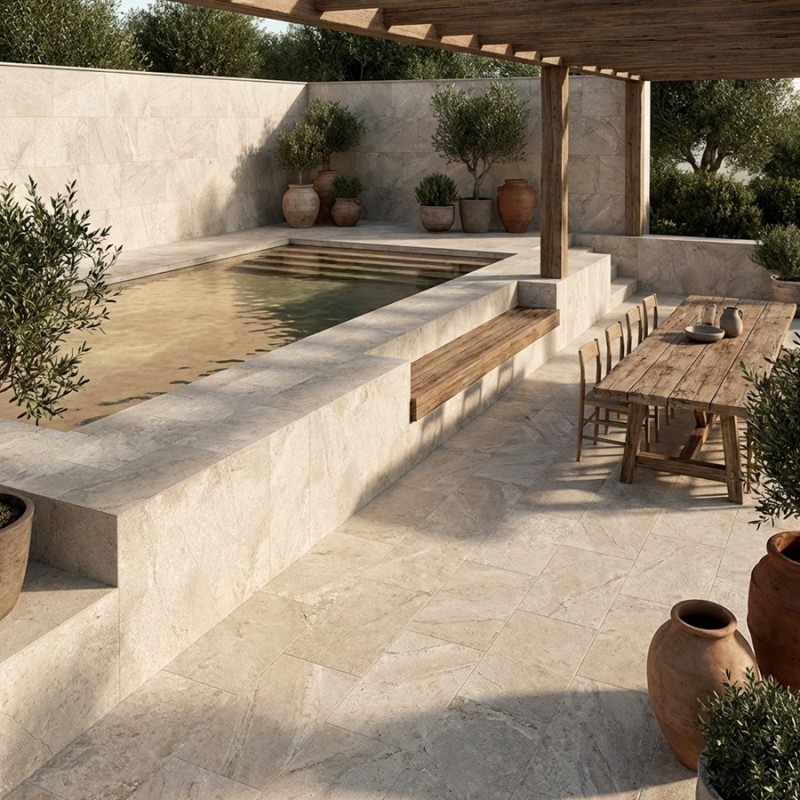 Créez une terrasse d'exception avec nos carreaux effet pierre.