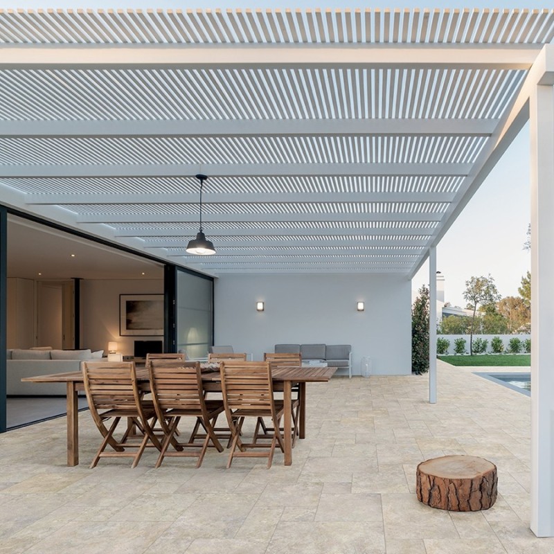 Idéal pour les abords de piscine, ce carrelage opus romain effet travertin associe charme naturel et sécurité. Grâce à sa finition antidérapante R11, il garantit confort et sérénité tout en offrant un rendu élégant et durable.