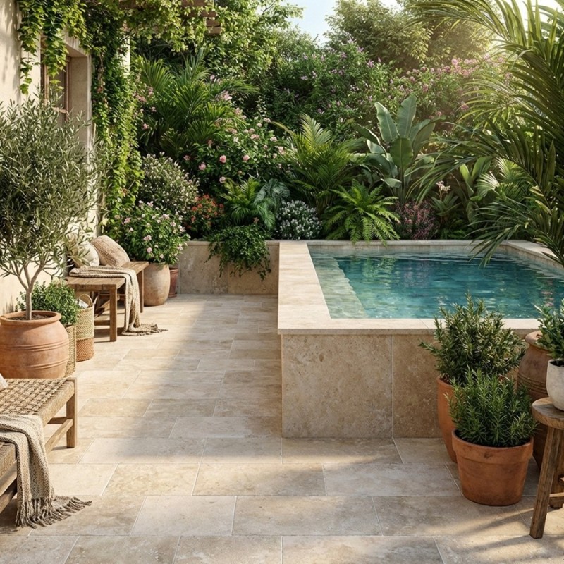 Ce carrelage travertin grand format se distingue par son caractère intemporel, sa qualité italienne et sa polyvalence. Il trouve facilement sa place dans tout projet d’aménagement recherchant l’élégance naturelle du travertin.