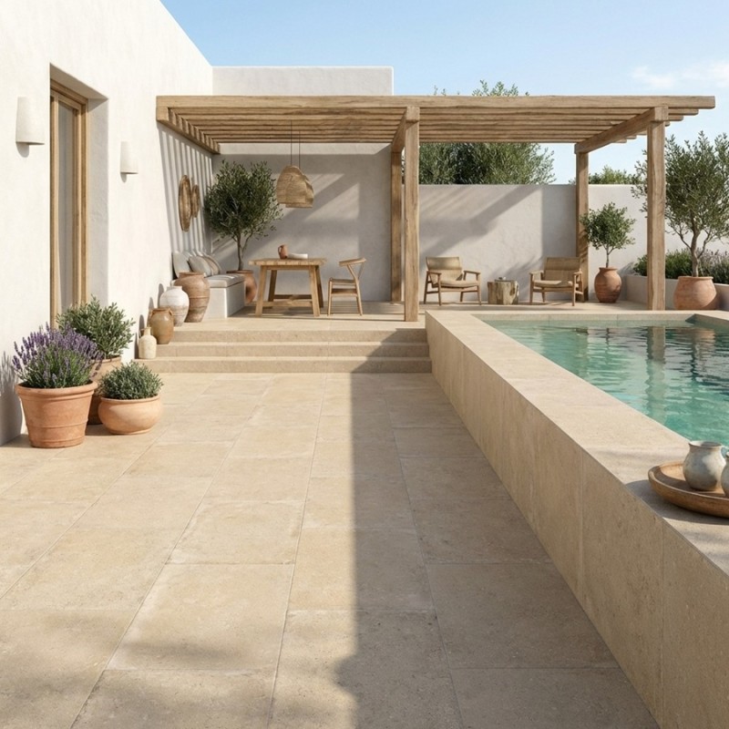 Le carrelage Kyoto Ivory 60x120 est idéal pour créer des espaces extérieurs contemporains, lumineux ou d’inspiration architecturale. Associé à du bois clair, du béton ou des matériaux mats, il renforce la sensation d’espace et apporte une élégance naturelle au sol.