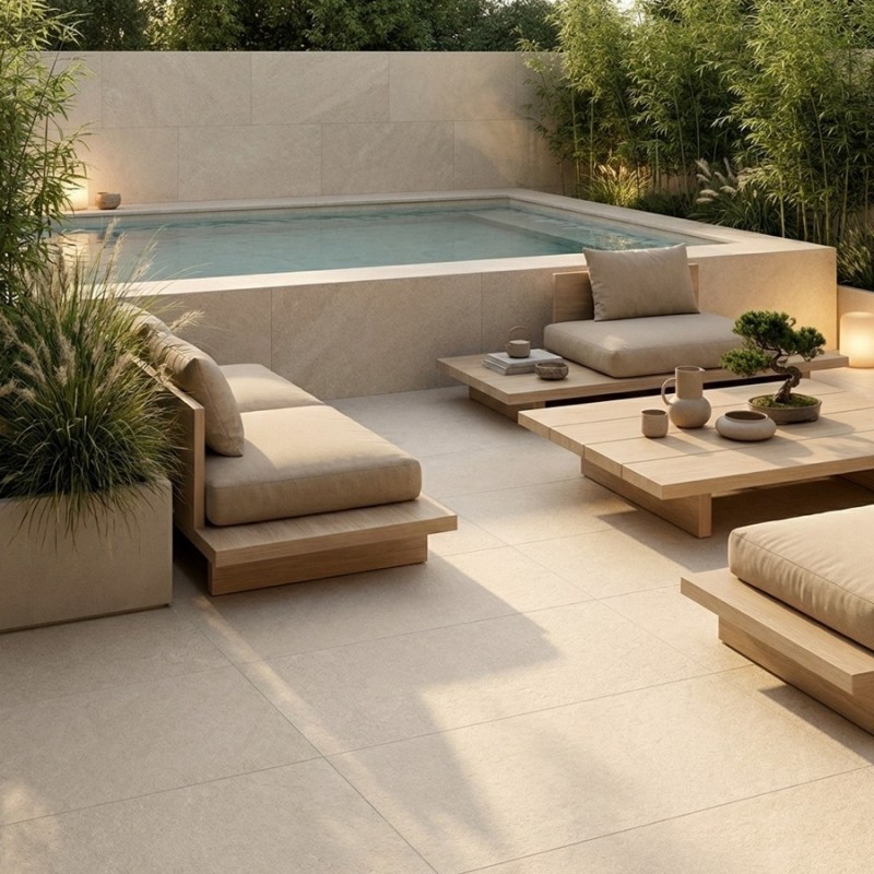 Le carrelage extérieur imitation pierre Iwa White 60x120 R11 associe un rendu naturel élégant à une surface antidérapante, idéale pour les terrasses, les abords de piscine et les espaces exposés à l’eau, tout en restant compatible avec un usage intérieur.