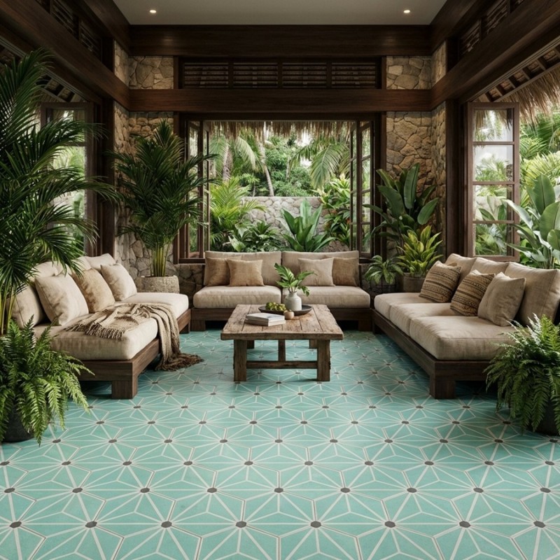 Son design effet carreaux ciment allie à la fois modernité et tradition, apportant du caractère et une personnalité affirmée à vos pièces. Très facile d'entretien, le carrelage OSAKA AQUA est également résistant aux taches et à l'humidité, le rendant idéal pour les espaces à fort passage.