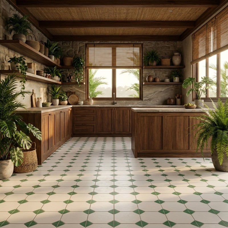 carrelage effet carreaux ciment 20 x 20 cm MIX GREEN