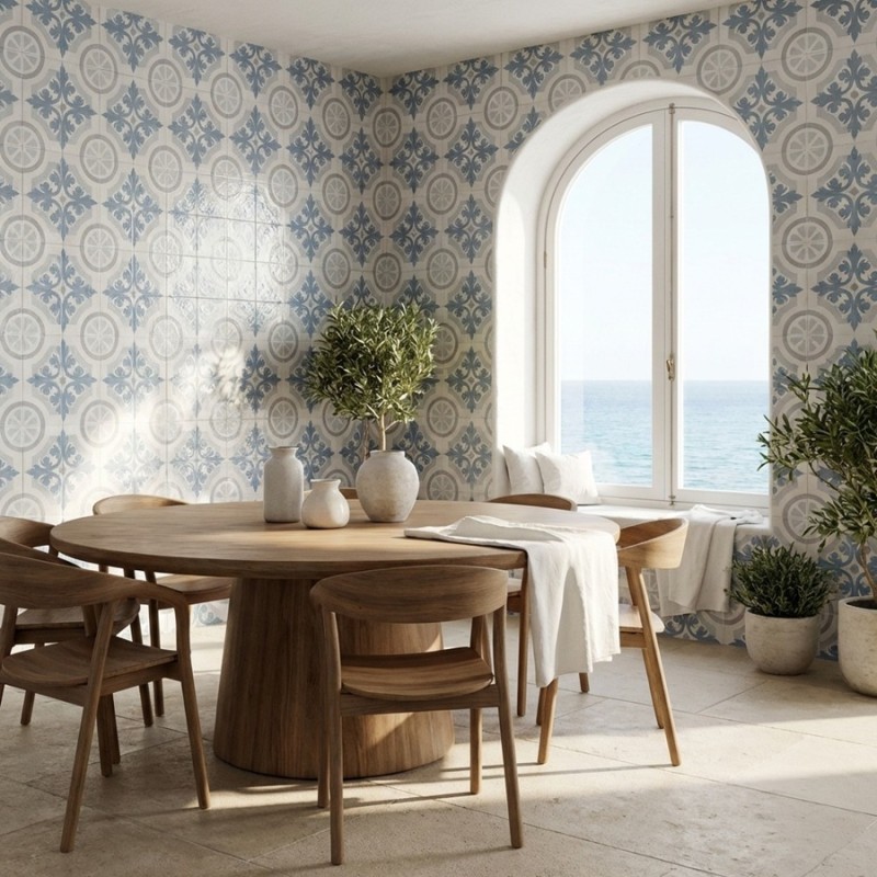 Avec ses courbes graphiques et ses teintes pastel, ce carrelage 15x15 cm imitation ciment évoque les carreaux anciens revisités. Le motif bleu-gris sur fond blanc vieilli apporte une touche rétro subtile, idéale pour une déco classique ou scandinave. Parfait pour sols ou murs, il illumine l’espace tout en lui donnant du cachet.