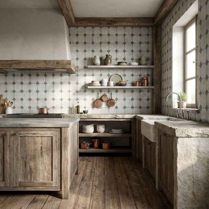 Carrelage décor imitation carreaux ciment vieilli 20x20 cm CASALE COTTO