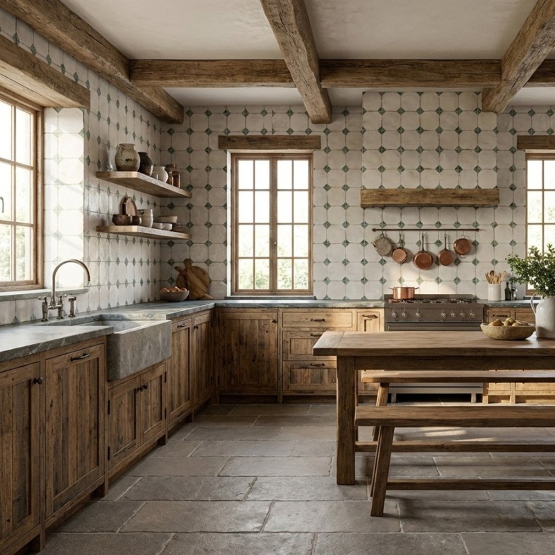 Le carrelage Renaissance Corner 20x20 cm recrée avec finesse l’esthétique du carrelage cabochon. Grâce à ses coins vert marbré, il forme à la pose un élégant motif en losanges évoquant les célèbres cabochons, sur un fond blanc vieilli façon ciment ancien. Ce modèle apporte une touche classique et raffinée aux intérieurs au charme rétro ou haussmannien.