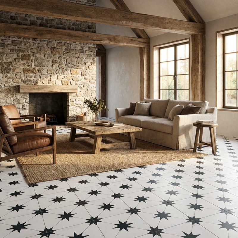 Avec son format 22,3x22,3, ce carreau est parfait pour créer un dallage rythmé, facile à intégrer dans différents styles. Il convient particulièrement à une cuisine où l’on veut une zone visuellement marquée (coin repas, crédence, alcôve), mais aussi dans une salle de bain, une entrée ou un couloir : chaque pièce gagne en personnalité sans surcharger la déco.