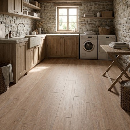 Le format allongé de 19,4x120 cm permet de créer une illusion d’espace et d’allonger visuellement vos pièces, en particulier lorsqu'il est posé en diagonale ou en chevron. Ce modèle est particulièrement adapté aux grandes pièces, où il permet de créer un effet de continuité harmonieux. La texture imitant le bois naturel, avec ses veines et irrégularités subtiles, apporte une dimension supplémentaire à votre décor, donnant l'impression d’un matériau noble et authentique.