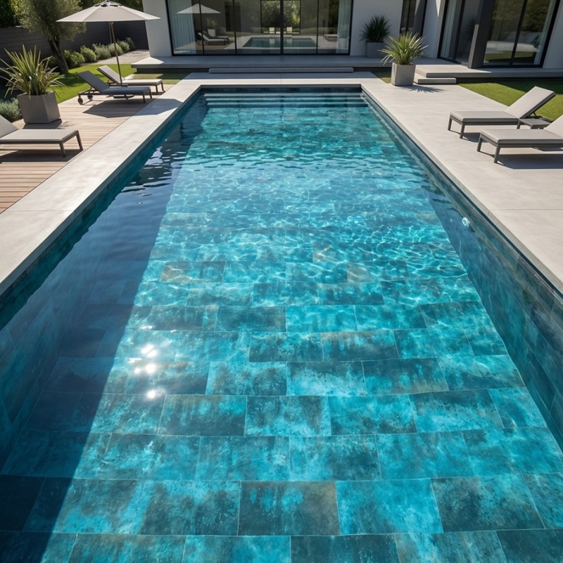 Avec les jeux de lumière qu’offrent le soleil ou les luminaires, ce carrelage ZAFIRO Blue effet métallique ne finira pas de vous surprendre. Son design allie le moderne et l’ancien pour apporter un nouveau souffle à votre piscine. Le carrelage ZAFIRO Blue effet métallique s'accorde parfaitement à tous les types de piscines. Sa disposition contribue à la création de l’ambiance décorative que vous recherchez, alors choisissez bien ! Une bonne disposition permettra de créer une surface artistique et hypnotisante sous l’eau.
