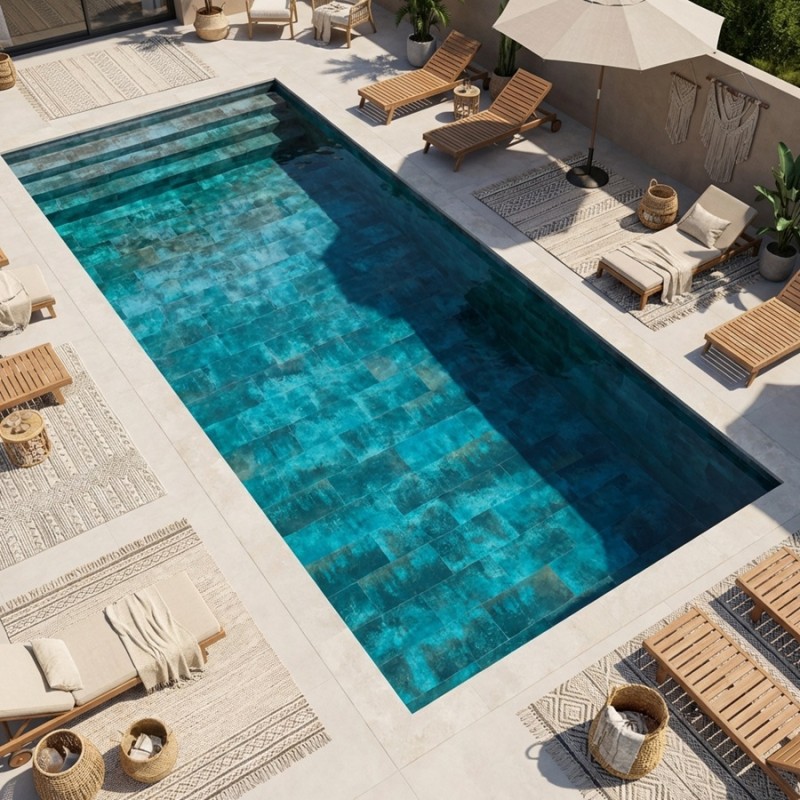 Le choix du revêtement de sa piscine définit son esthétique et son atmosphère. Embellissez votre piscine avec notre carrelage ZAFIRO Blue effet métallique, il ne finira pas d’étonner vos convives ! Il émerge comme une option tendance, alliant le charme du métal à la beauté du bleu de l’océan. Ce revêtement fait preuve de résistance, mais surtout d’élégance avec ses nuances de couleur. Que vous construisiez votre premier bassin ou que vous procédiez à une rénovation, notre carrelage ZAFIRO saura répondre à vos attentes.