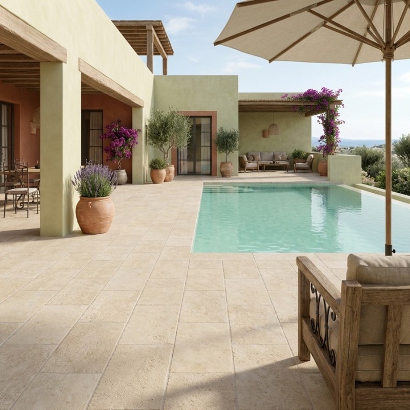 Carrelage KYOTO IVORY effet pierre 120x120 antidérapant