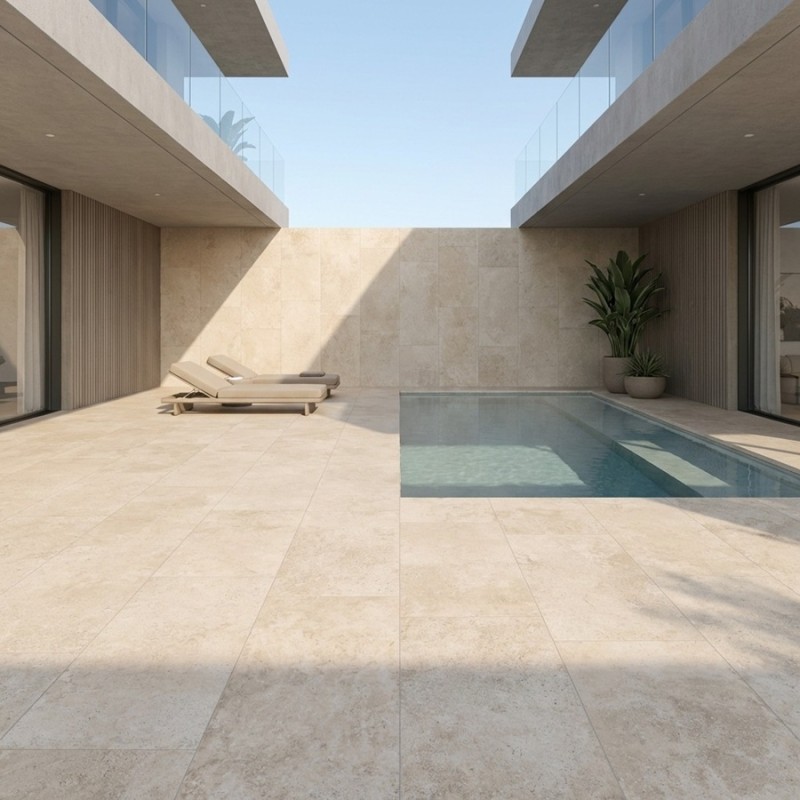 En seulement 8–9 mm d’épaisseur, ce carrelage conjugue faible poids, grande résistance, facilité de pose et haute qualité de finition. Antidérapant et ingélif, il s’adapte aux environnements extérieurs exigeants tout en offrant un style naturel et chaleureux.
