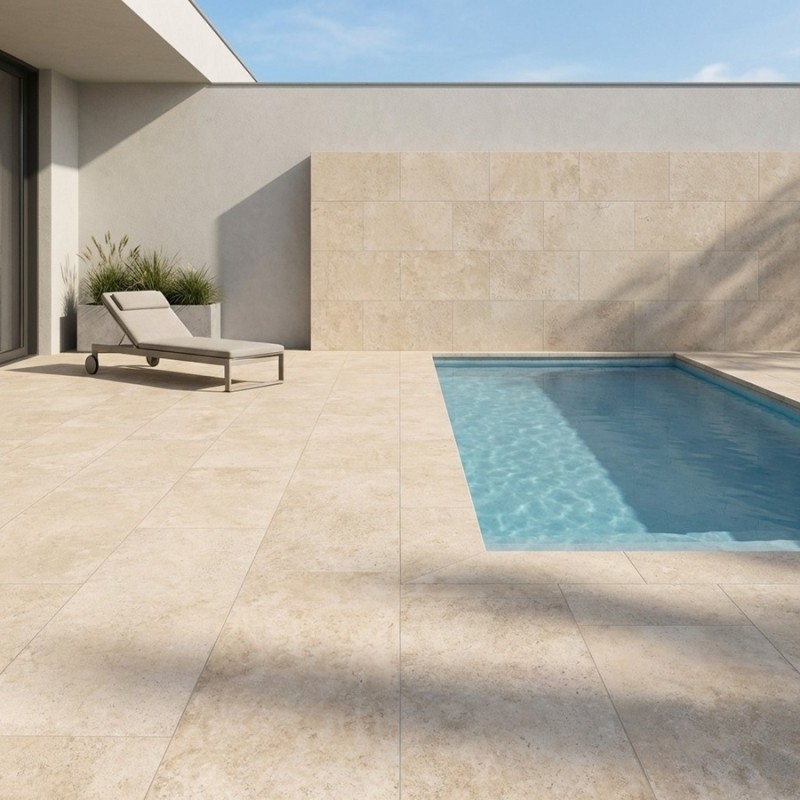 La couleur beige rosé présente un beige clair poudré, lumineux, idéal pour agrandir visuellement l’espace et créer un sol harmonieux. Elle offre une esthétique élégante, légèrement rustique, qui rappelle le charme des ouvrages en pierre naturelle classiques. Le format 60x120 renforce cette impression d’ampleur : un grand rectangle moderne qui limite les joints et élance le sol, qu’il s’agisse d’une terrasse, d’un intérieur prolongé vers l’extérieur ou d’un dallage autour de la piscine.