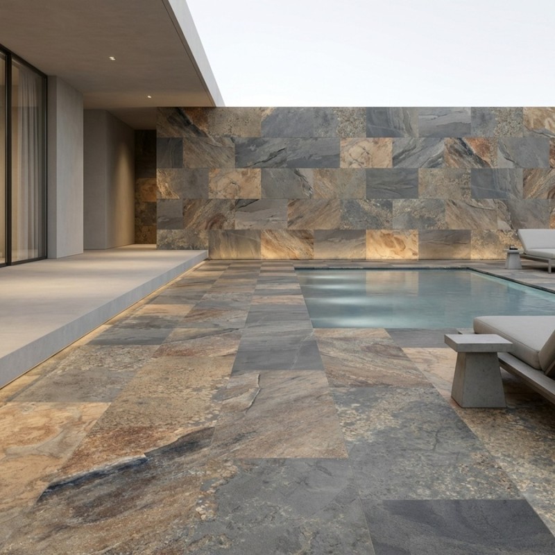 Le carrelage SOLEA MULTI 60x120 cm effet pierre est une solution idéale pour sublimer vos espaces extérieurs avec naturel et élégance. Inspiré par la richesse minérale des pierres naturelles, il crée une ambiance authentique et intemporelle sur votre terrasse, bord de piscine ou jardin. Son format généreux de 60x120 cm permet de structurer les espaces avec modernité et fluidité, offrant un rendu harmonieux et raffiné.