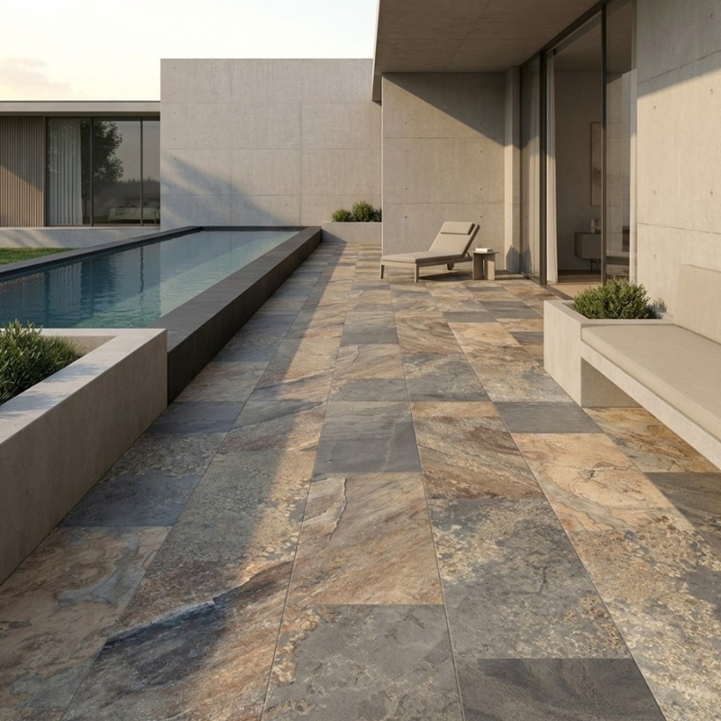 Ce carrelage est un choix parfait pour ceux qui recherchent une solution esthétique, pratique et durable afin de transformer leur extérieur en un véritable havre de paix.