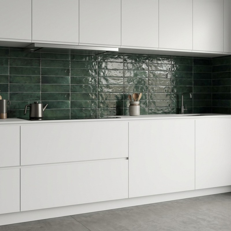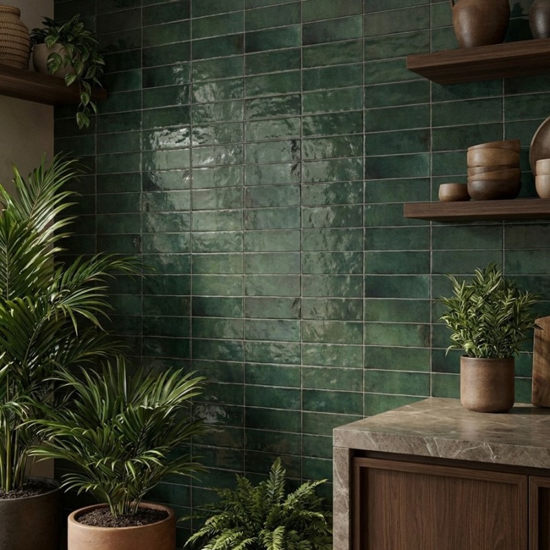 Le carrelage imitation Zellige Malem Green 65x20 cm se distingue par sa couleur verte riche et vibrante, qui apporte une touche de fraîcheur et d'originalité à vos espaces intérieurs. Ces carreaux allongés sont parfaits pour créer des effets visuels dynamiques, que ce soit en crédence de cuisine ou en revêtement mural.