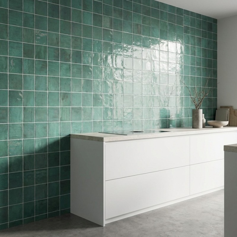 Le carrelage effet zellige SOROLLA AQUA 13,2x13,2 cm apporte une fraîcheur éclatante à vos murs grâce à sa teinte aqua et sa finition brillante. Sa texture irrégulière rappelle l’artisanat des zelliges traditionnels, offrant un effet visuel captivant et lumineux.