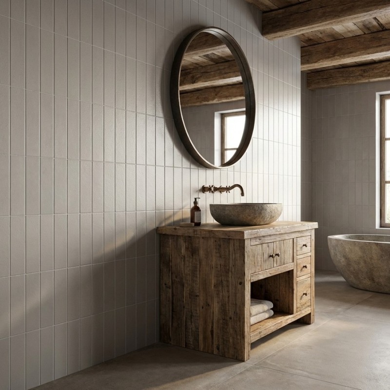 Associez-le à des matériaux comme le bois ou le métal pour un rendu contrasté et moderne. Des accessoires en céramique et des plantes renforceront l’esthétique épurée et sophistiquée de votre décoration. Ce carrelage sublimera vos espaces avec une touche de modernité et de caractère.