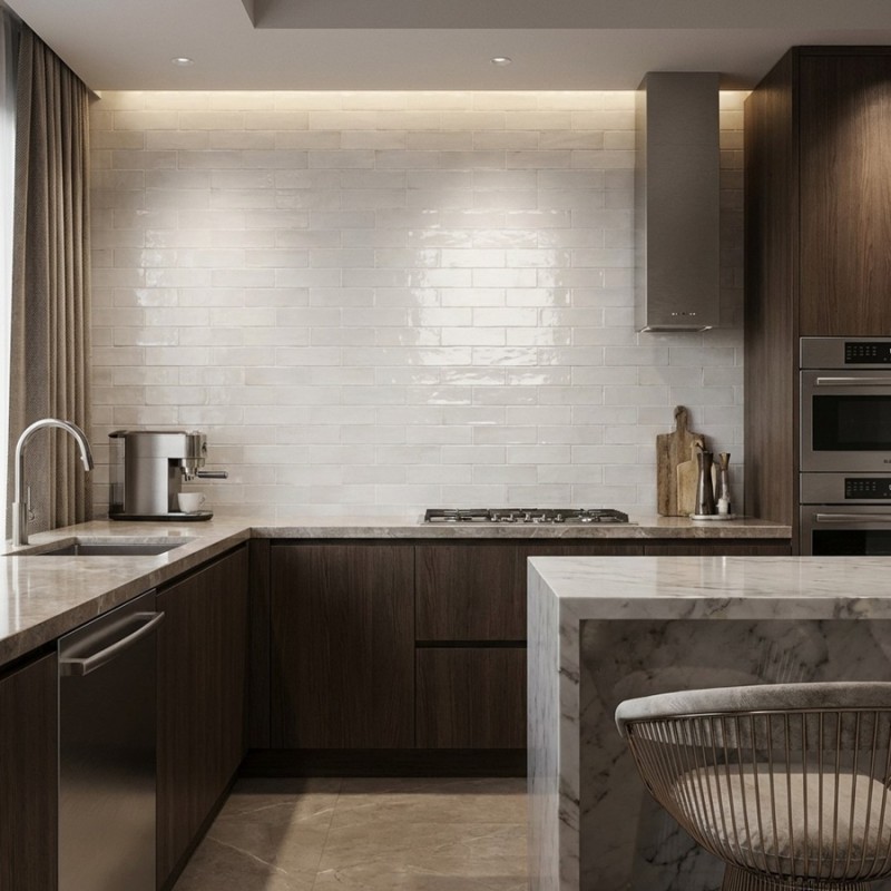 Avec son format rectangulaire allongé, il permet de nombreuses configurations de pose, que ce soit en lignes droites ou en motifs plus créatifs. Sa surface brillante reflète la lumière et ajoute du volume à vos espaces, créant une ambiance apaisante et contemporaine.