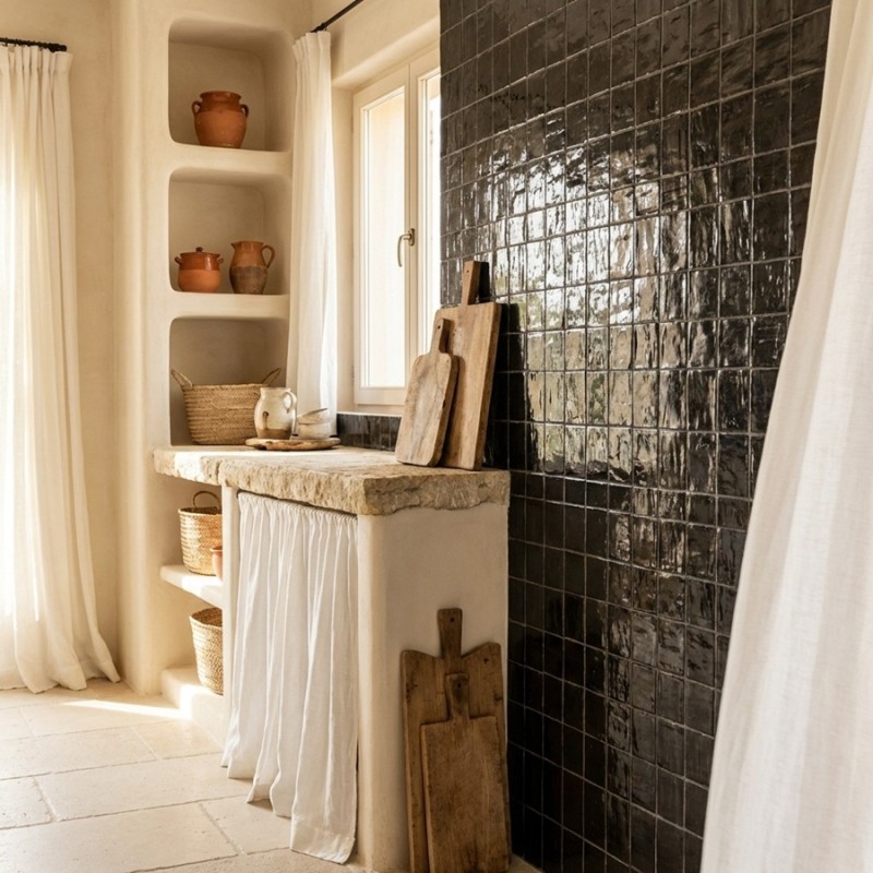 Le carrelage effet zellige 10x10 cm MALLORCA BLACK est une solution élégante pour ajouter du contraste et du caractère à vos intérieurs. Sa teinte noire profonde, associée à une finition brillante, recrée l'authenticité des zelliges traditionnels marocains tout en offrant une touche moderne et sophistiquée. Idéal pour les crédences, salles de bain ou murs d’accent, ce carrelage apporte une atmosphère chic et contemporaine.
