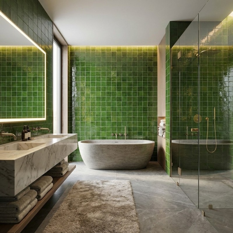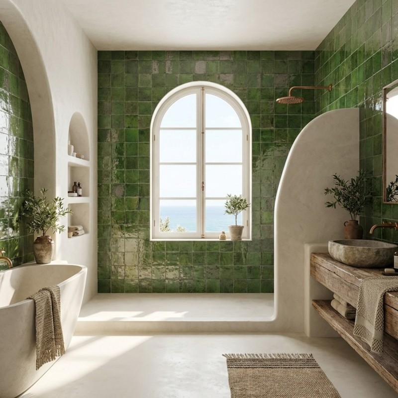 Parfait pour les murs de la cuisine, de la salle de bains ou pour un mur d'accent, le carrelage MENORCA GREEN apporte une note naturelle et harmonieuse à vos espaces. Sa couleur verte se marie parfaitement avec des matériaux tels que le bois ou la pierre, créant une décoration équilibrée et sereine. Posé en ligne droite ou en motifs créatifs, il permet de personnaliser chaque espace selon vos envies.