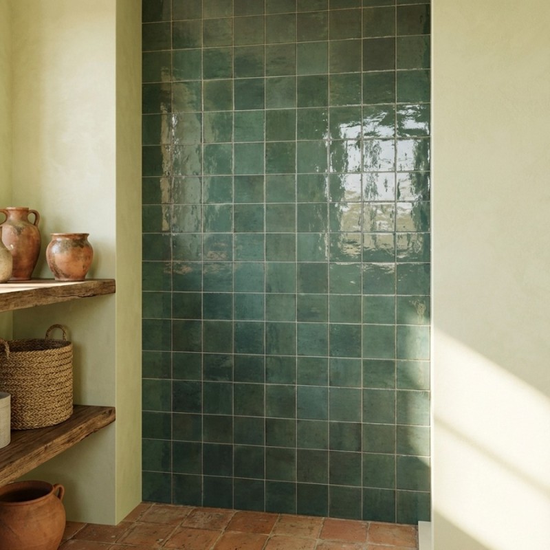 L'effet zellige du carrelage AGADIR SELVA est particulièrement apprécié pour son irrégularité, qui confère un côté artisanal très recherché dans la décoration moderne. Les légères imperfections volontaires créent une texture vivante et chaleureuse, parfaite pour personnaliser vos intérieurs et leur donner une identité forte. Ce carrelage peut être combiné avec des matières naturelles telles que le bois clair ou la pierre, renforçant ainsi son caractère authentique.