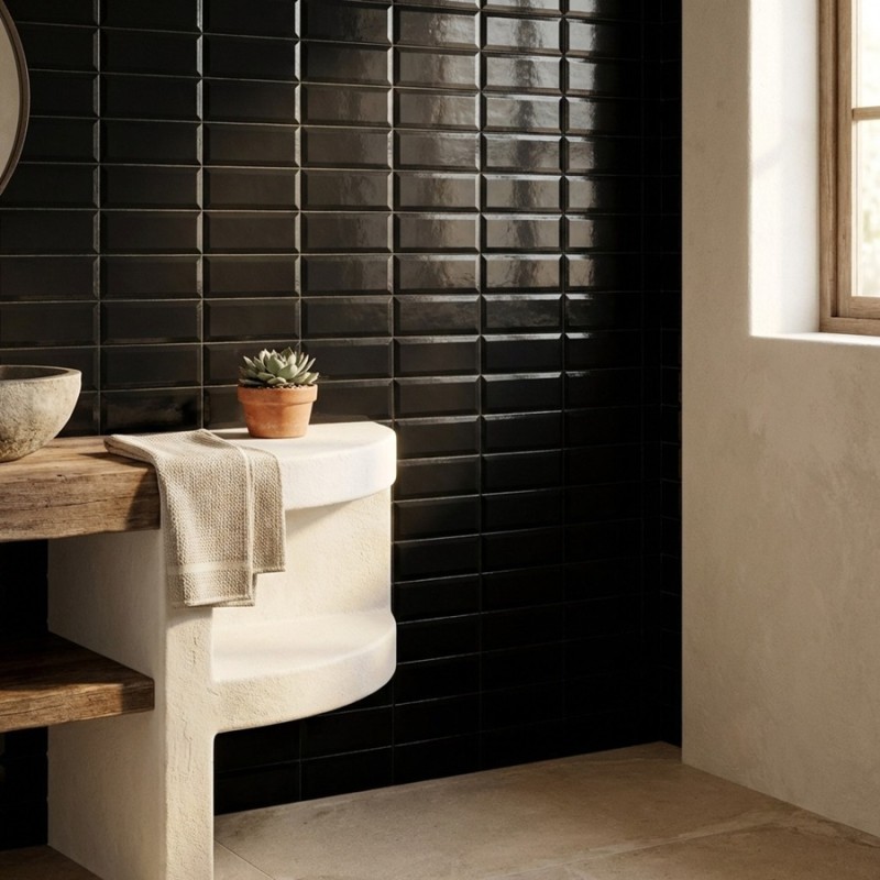 Inspiré du style métro parisien, le carrelage métro noir brillant effet zellige 7,5x15 cm sublime vos intérieurs avec son éclat sophistiqué. Son format compact et sa surface lumineuse créent un rendu intemporel, parfait pour les cuisines et salles de bain. Associez-le à des joints contrastés pour un effet graphique marqué ou à des tons neutres pour une élégance sobre. Polyvalent et résistant, il s'adapte à toutes vos envies déco.