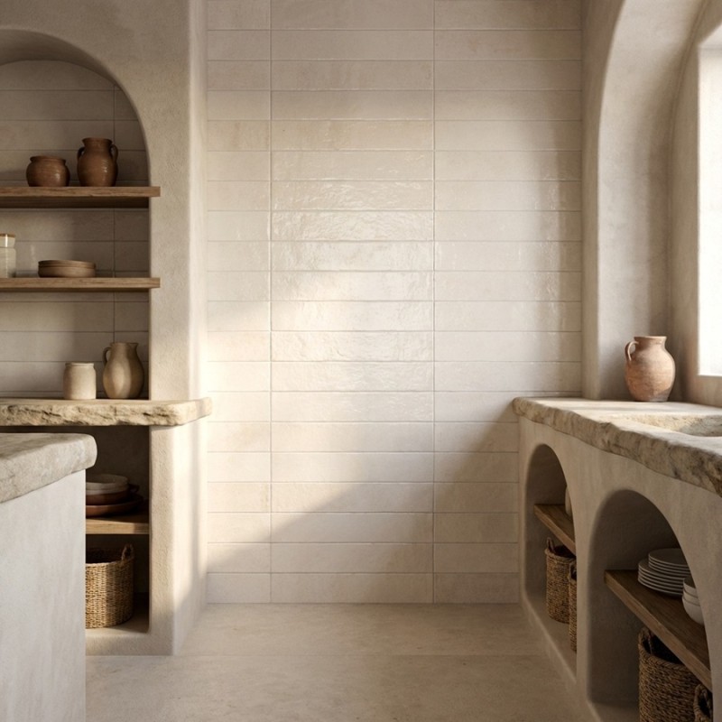Le carrelage Algarra Clean 5x40 cm offre une finition brillante et un effet zellige artisanal. Idéal pour créer une ambiance lumineuse et raffinée sur vos murs intérieurs, en cuisine, salle de bains ou douche. Son format allongé apporte une touche contemporaine unique, tout en restant intemporel.