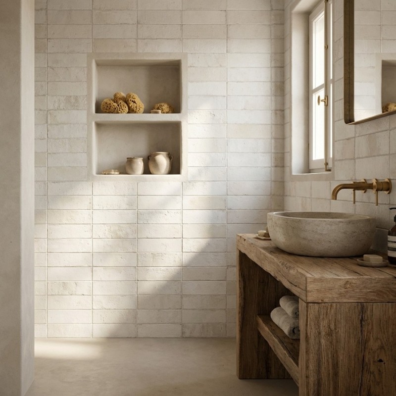 Le carrelage Zonia Chalk 6,5x20 cm évoque la pureté du zellige traditionnel avec une finition mate et une teinte blanc chaud très naturelle. Idéal pour habiller les murs d’une cuisine, d’une salle de bains ou d’une douche, il apporte douceur, texture et sobriété. Sa surface subtilement irrégulière lui donne un caractère artisanal et authentique, très tendance.