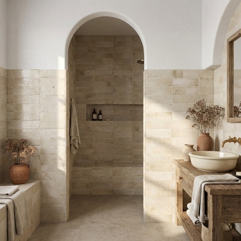 Avec son beige sable inspiré des tons méditerranéens et son éclat brillant, le carrelage Zonia Sand 6,5x20 cm est parfait pour créer une ambiance douce et ensoleillée. Sa surface irrégulière typique du zellige artisanal capte la lumière et donne du relief au mur. Un choix idéal pour cuisine, salle d’eau ou projet déco intemporel.
