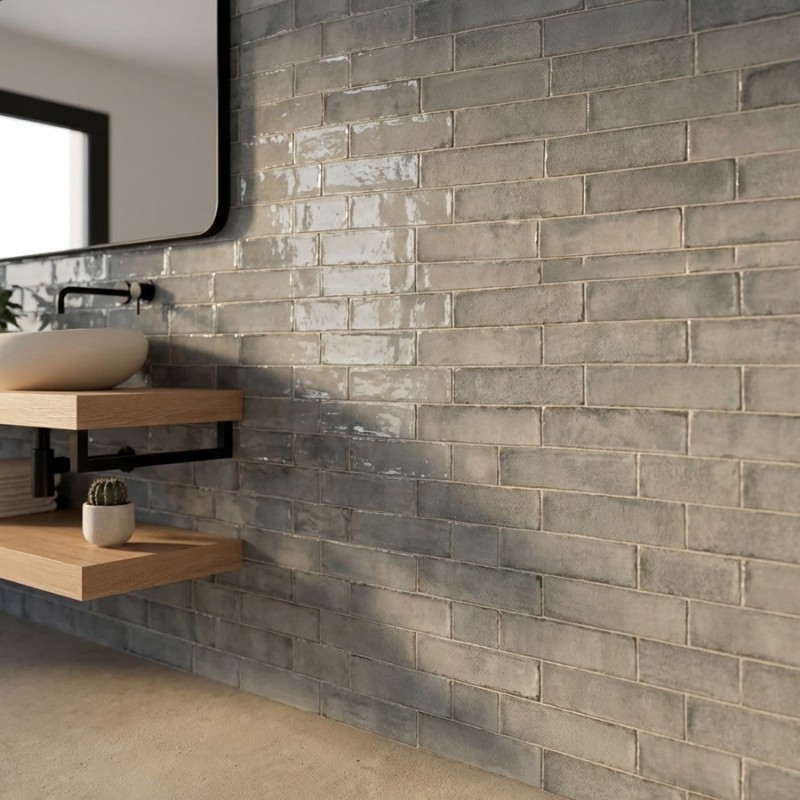 Le carrelage Hackney Grey 6,9x24 cm apporte un équilibre parfait entre sobriété et style. Sa finition brillante reflète la lumière, tandis que ses bords irréguliers donnent du relief aux murs. Parfait en pose murale dans une salle de bains, une cuisine ou même un couloir, il s’adapte à tous les univers déco. Une base neutre, graphique et élégante.