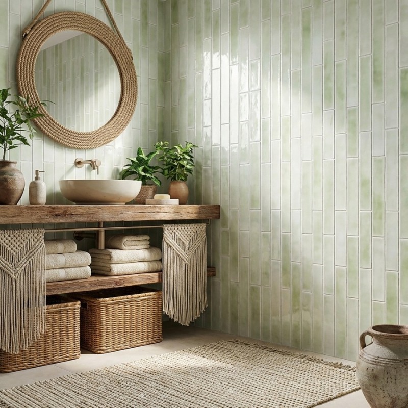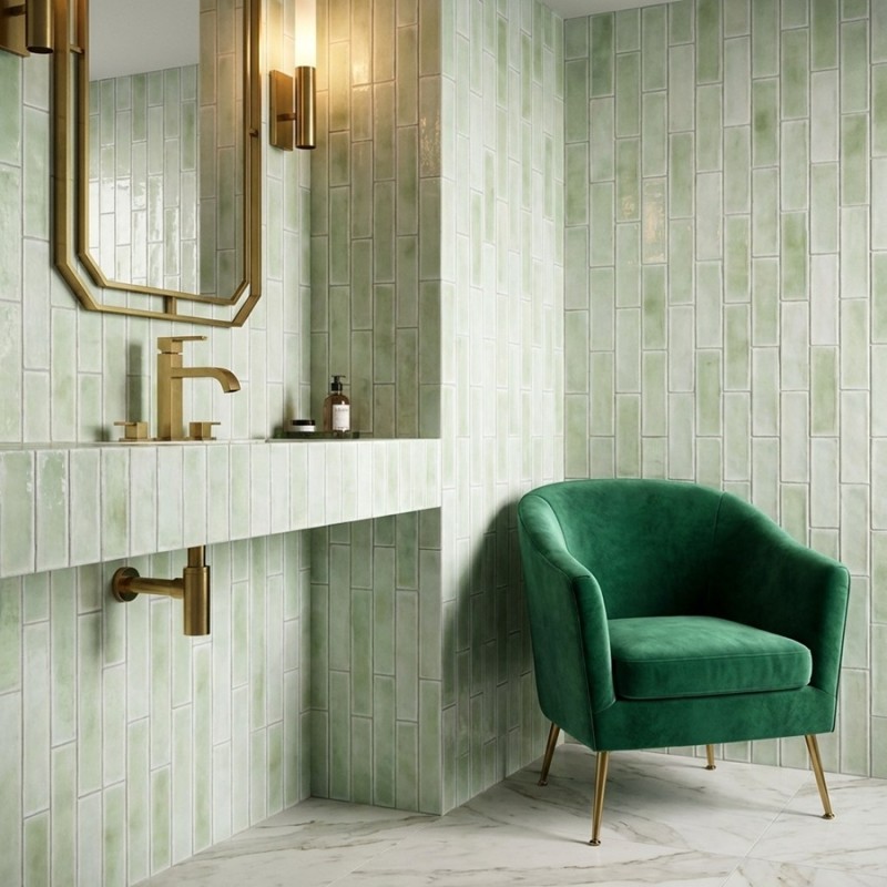 Le carrelage Vital Verdone 7,5x30 cm séduit par sa teinte vert intense et sa finition brillante inspirée du zellige traditionnel. Sa surface irrégulière crée des reflets subtils qui donnent vie au mur. Parfait pour une cuisine, une salle de bains ou un mur d’accent raffiné, ce format rectangulaire se prête à des poses modernes et graphiques.