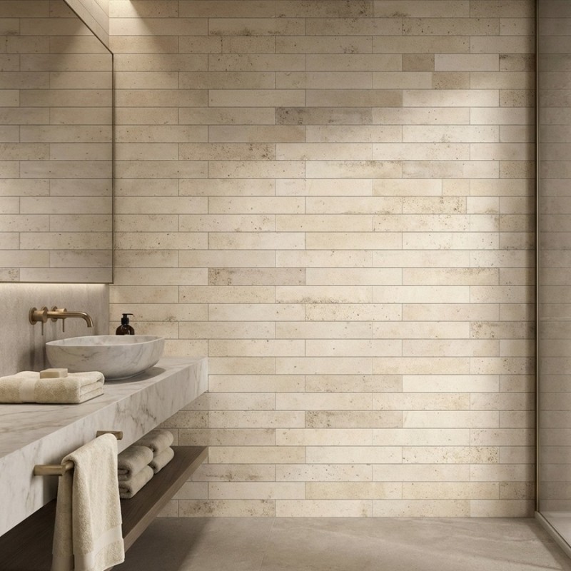 Chroma Sand est parfait pour créer une décoration douce, lumineuse et authentique, tout en offrant la solidité d’un carrelage mural de haute qualité.