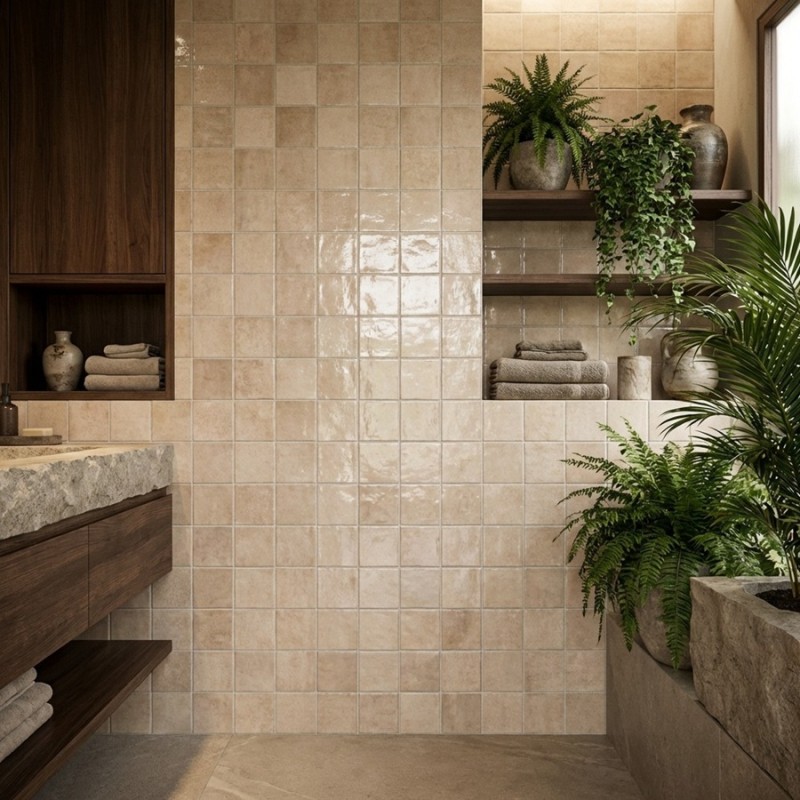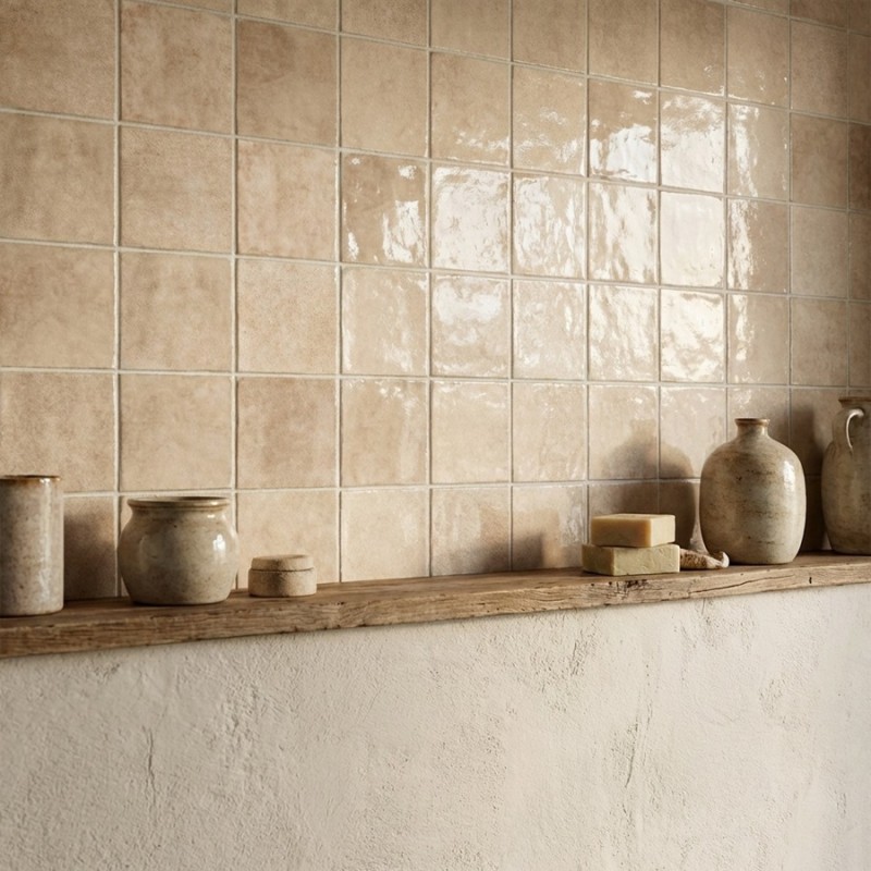 Ce carrelage mural brillant couleur sable revisite le zellige marocain artisanal grâce à un effet carré chaleureux et lumineux. Une solution idéale pour la cuisine, la salle de bain ou toute pièce où l’authenticité et la douceur sont essentielles.