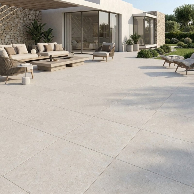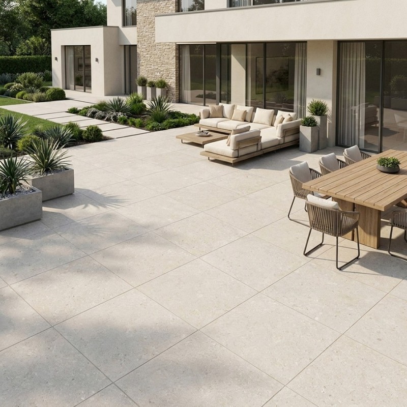 Carrelage extérieur grand format LEVINA CALCAIRE ALMOND 100x100 cm R11 antidérapant