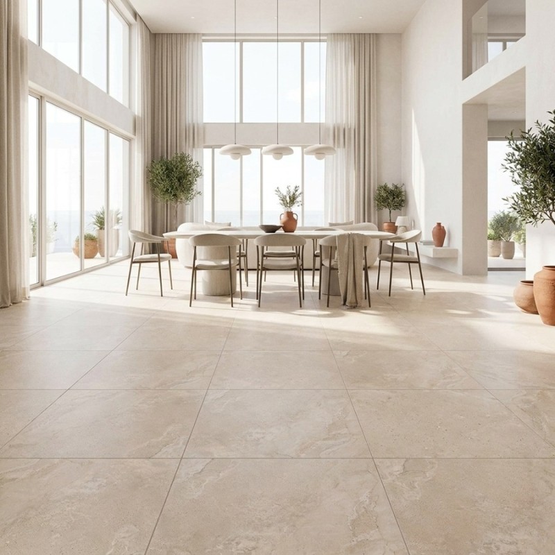 Inspiré des matières minérales authentiques, ce carrelage 100x100 effet pierre propose une teinte almond douce et lumineuse, parfaite pour créer une ambiance apaisante et contemporaine. Son grand format 100x100 renforce la sensation d’espace et limite les joints pour un rendu visuel épuré.