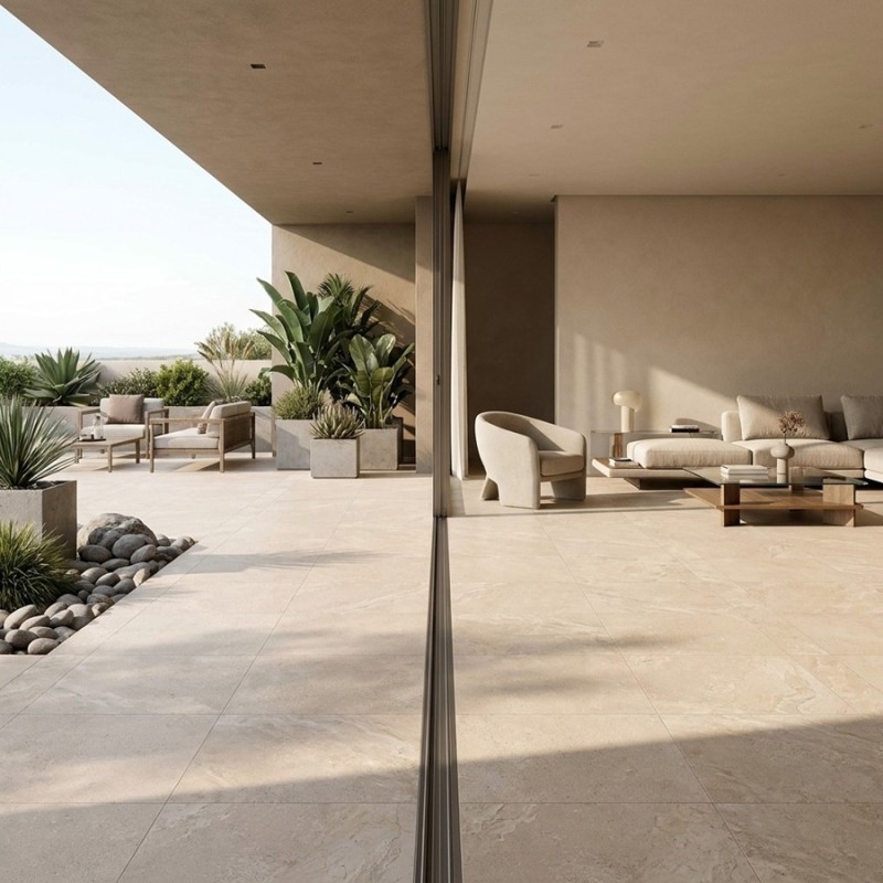 Pour une continuité esthétique, associez-le à la version intérieure en R9 afin de prolonger l’effet pierre du salon vers la terrasse.