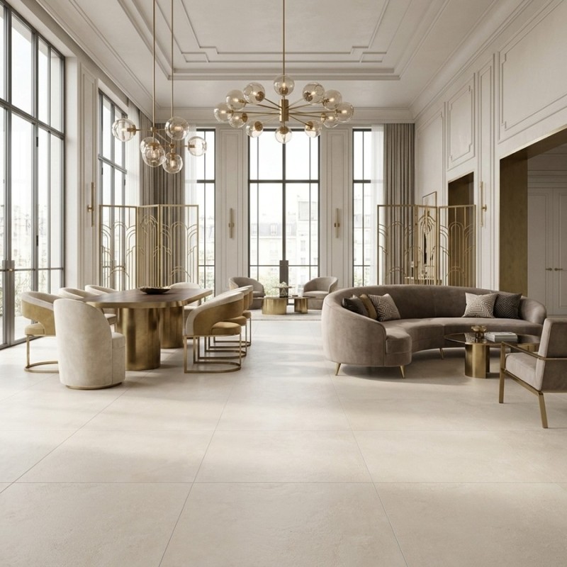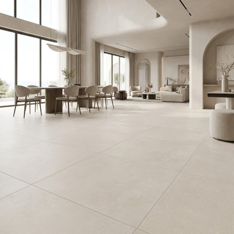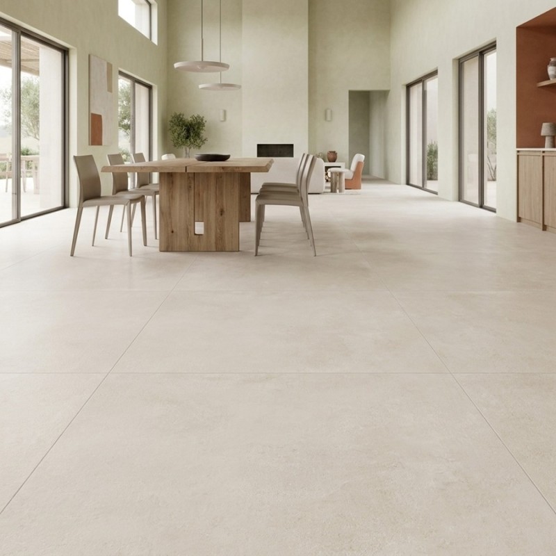 Ce carrelage effet béton 100x100 s’inspire des matières brutes pour offrir un rendu moderne et intemporel. Sa teinte crema, douce et lumineuse, permet de créer des ambiances apaisantes tout en conservant un esprit résolument design.